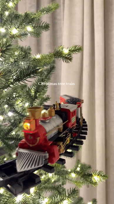Einfach zu montieren, legt sich dieser kleine Zug sanft über oder um den Baum und umarmt die Zweige wie ein festliches Band. Seine Räder drehen sich leicht, während die Lichter zwischen den Dekorationen tanzen und der Umriss des Weihnachtsmanns am Steuer erscheint – bereit, seine Geschenke zu verteilen. Eine kleine Geste, die jeden Baum in eine lebendige Szene verwandelt – eine bewegte Krippe, die die Blicke fesselt und das Herz erwärmt.